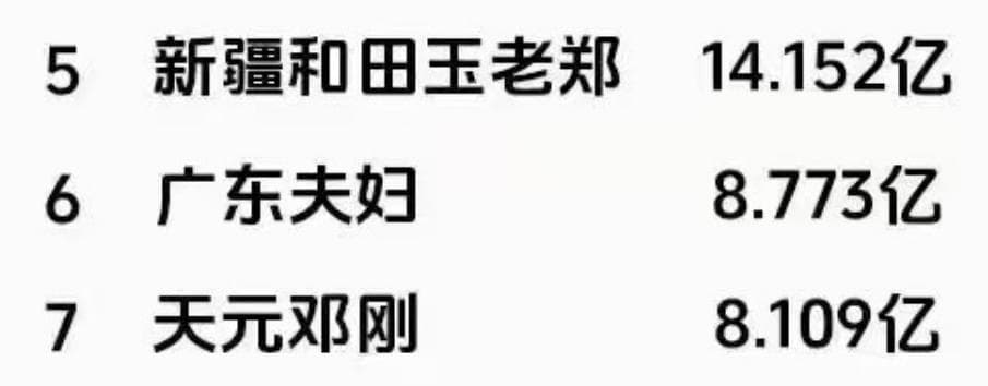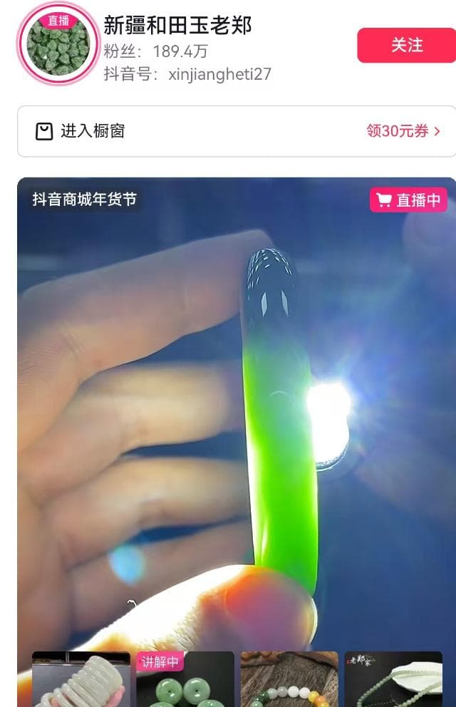 在去年抖音双十一大促的时候,新疆和田玉老郑24天带货7.98亿,直接拿到了带货达人榜第一名,力压与辉同行和疯狂撒钱的广东夫妇。