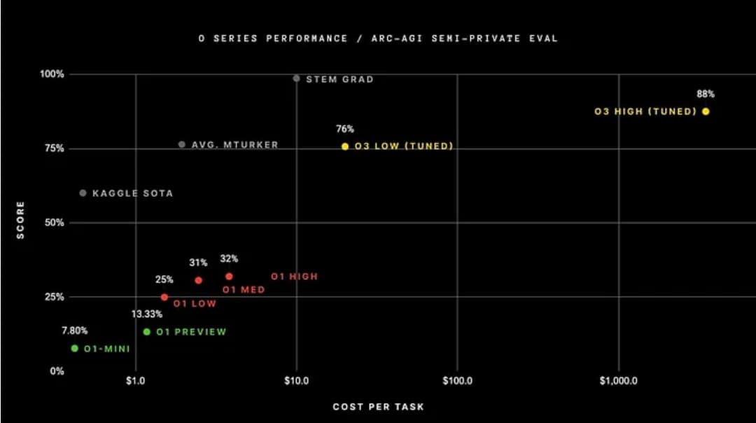 过去几天我在社交媒体上看到无数声称 o3 是 AGI 的说法,因为它在 ARC-AGI 公共基准测试中取得了显著成绩。