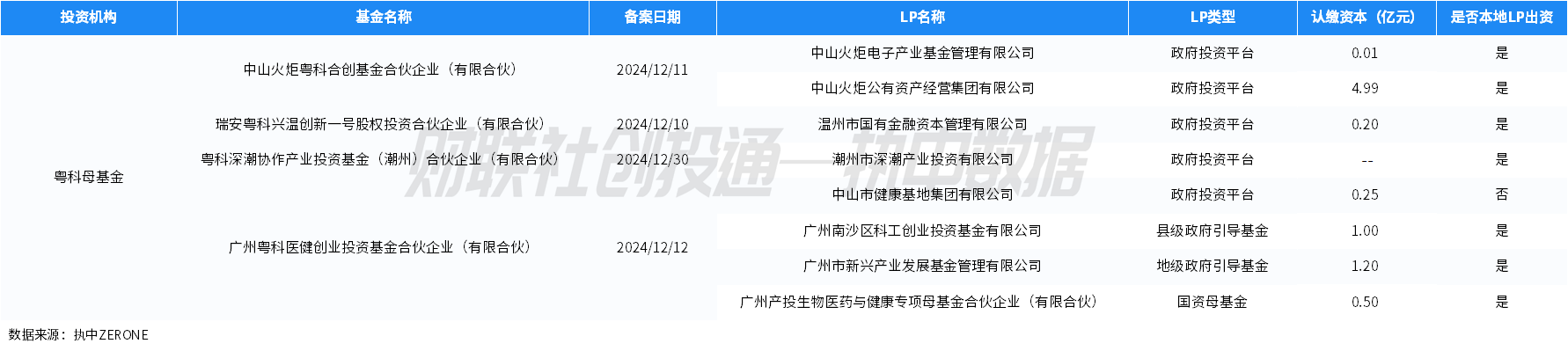 12月最受政府资金LP青睐的投资机构为粤科母基金,其管理的4支备案基金中山火炬粤科合创基金合伙企业(有限合伙)、瑞安粤科兴温创新一号股权投资合伙企业(有限合伙)、粤科深潮协作产业投资基金(潮州)合伙企业(有限合伙)、广州粤科医健创业投资基金合伙企业(有限合伙)分别获中山、温州、潮州、广州等地8家政府资金LP出资(非关联),累计认缴资本8.15亿元。