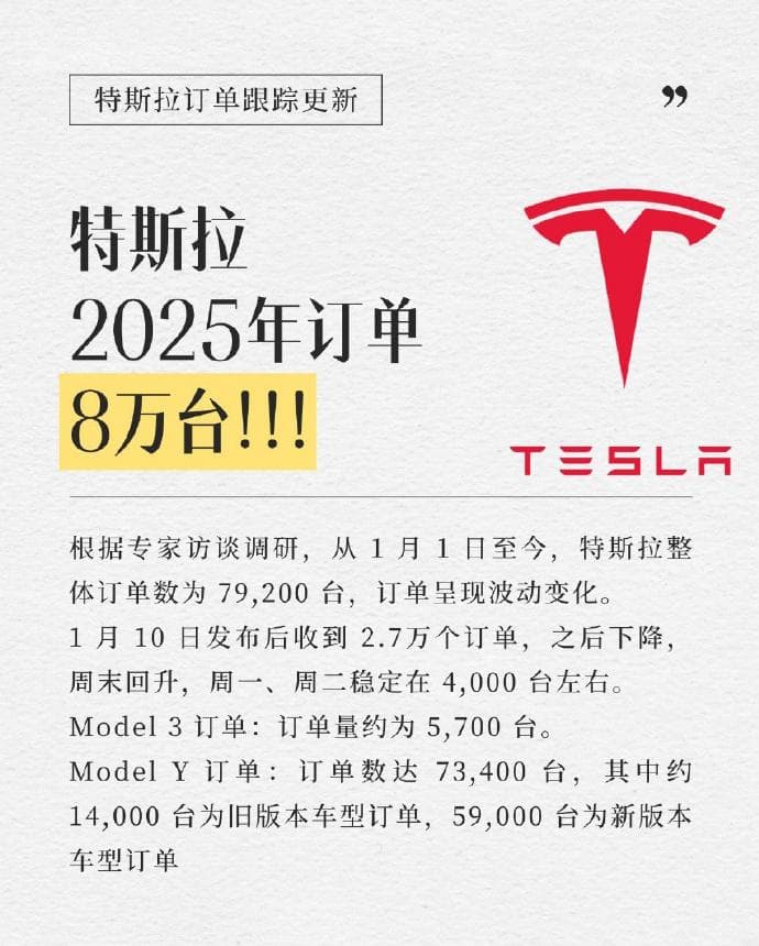从元旦到 1 月 15 号这半个月时间,特斯拉的整体订单量就已经达到 7.9 万台,比去年任何一个月的销量都要高,特斯拉门店销售估计都要爽疯了。