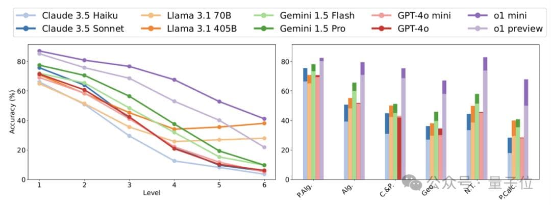 而在全新的高中奥数水平数学基准测试中,OpenAI的o1模型系列表现出众,不仅远超以往的模型,而且问题越难优势越明显。