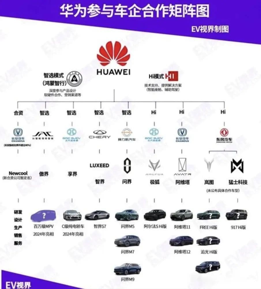 图/华为参与车企合作矩阵图,来源/EV视界 新能源观截图
