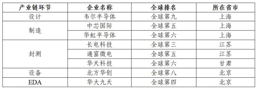 各产业链环节国内入围世界前十排名的企业 来源:《中国集成电路》期刊