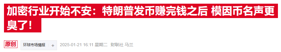 一些铁杆支持者批评称,特朗普的发币行为可能损害他作为总统的信誉。另有观点认为,这种行为加剧了外界对新兴加密货币行业过于轻浮、风险过高的批评声音。