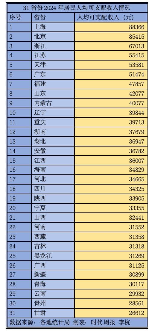 31省份人均收入账单出炉:8省份跑赢国家线,广东加入“5万元俱乐部”