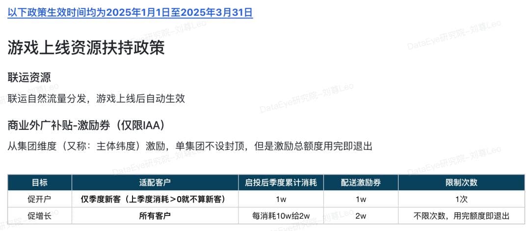DataEye研究院从一份 《B站丨小游戏激励政策2025年Q1》文档发现B小又上线了Q1的一系列扶持政策。
