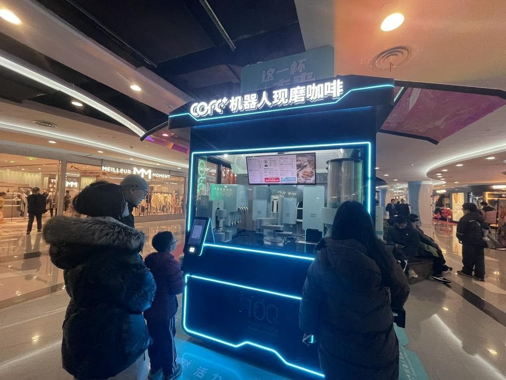 在上海一商场,消费者在操作屏上点单后,智能机器人可如同人类服务员一般现磨咖啡,提供十多种不同口味的咖啡选择,包括拿铁、卡布奇诺等。