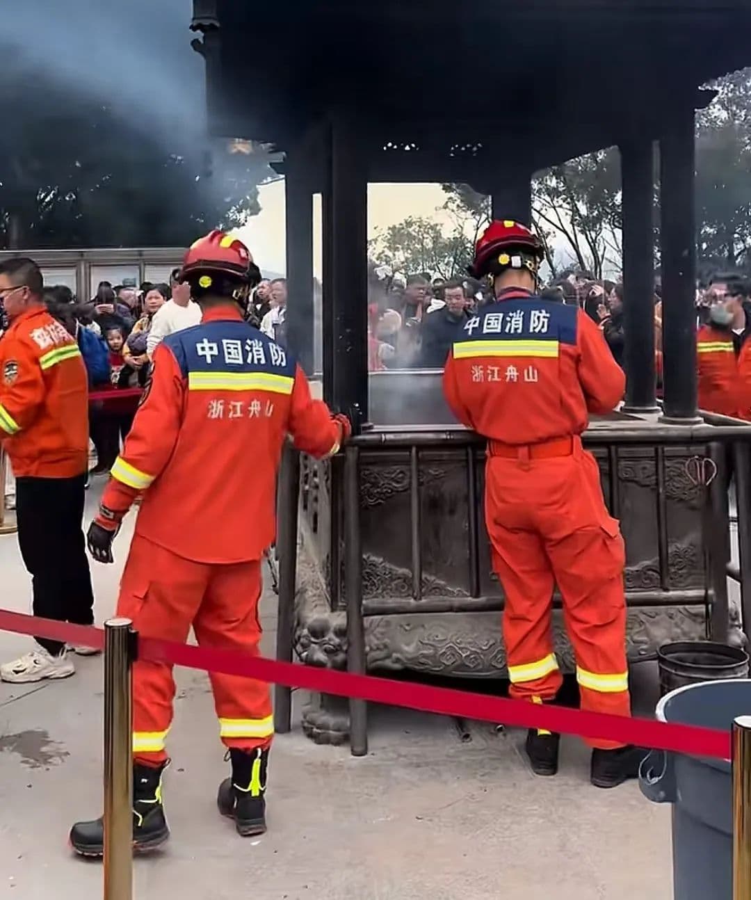 如今在热门寺庙,一个香炉配一个或多个消防员,几乎成了常态。