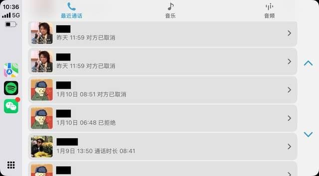 另外,CarPlay为了不分散驾驶员的注意力,对手机App的功能进行了大刀阔斧的删减。以大家常用的微信为例,尽管CarPlay会显示微信未读消息的数量,但却无法打开任何对话,甚至连听语音、发语音的功能都没有,整个App只剩下微信电话、音乐和播客这三个功能。