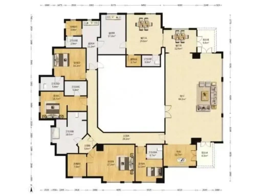 3)新天地的顶豪项目,华府天地的回字户型,446㎡的5室3厅。