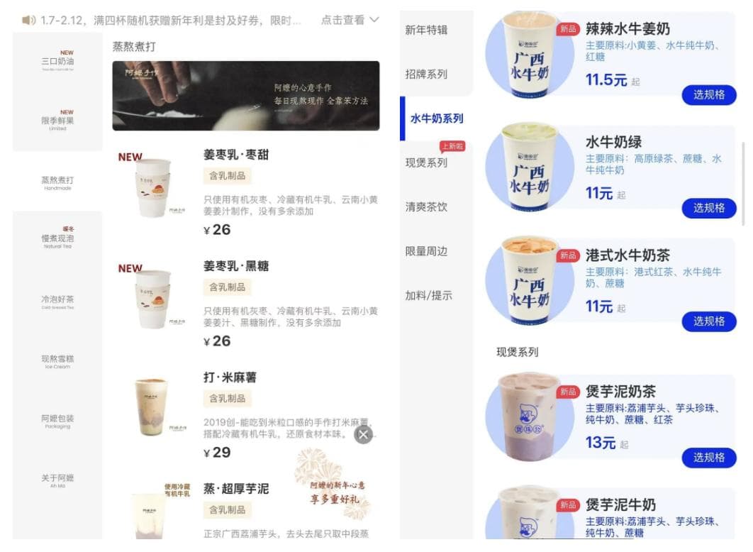 广西同乡阿嬷手作和煲珠公就遵循了同一套人称加动词的范式,一个是勤劳阿嬷在给你手打奶茶,一个是慈祥阿公在给你手熬珍珠,多么实在多么亲近多么返璞归真。