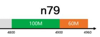 n79 说白了这是手机通信用到的众多频段中的一个, n79 本身只是一个代号,它代指的是 4800MHz-4960MHz 这个频率范围。