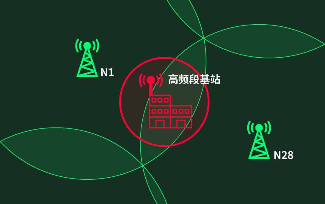 具体的做法就是用频率比较低的频段来保证信号的覆盖,比如移动和广电共用工信部划配的 n28 ,联通和电信共用划配的 n1 频段等等。