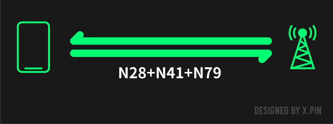 这时候 n79 的价值就体现出来了——我们从相关从业人员那里了解到,目前移动在进行载波聚合的时候,用得比较多的还是 n28+n41 两个频段,要同时把 3 个频段加在一起的话,就必须要用到 n79 。