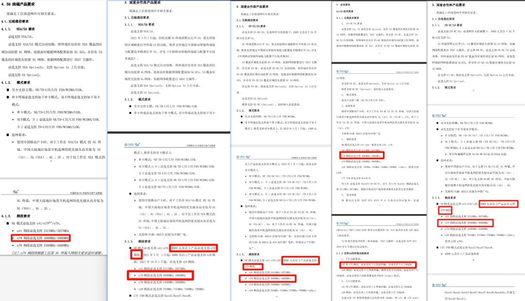 中国移动目前只是简单地在自家的《 5G 终端白皮书 》里提了一嘴,说 4000 元以上的手机必须支持 n79 频段。