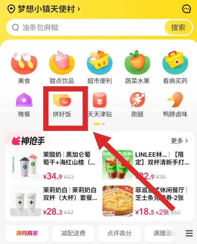 当你打开美团外卖 APP ,就会发现目前拼好饭已经是,最高级别的二级菜单之一。