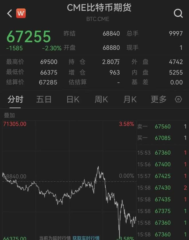 CME比特币期货较周四纽约尾盘跌2.30%,本周累计下跌3.09%。