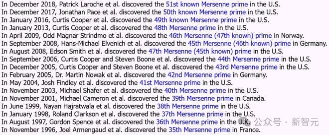 为表彰以上所有人员,此次荣誉归于「L. Durant、M. Preda、G. Woltman、A. Blosser等人」