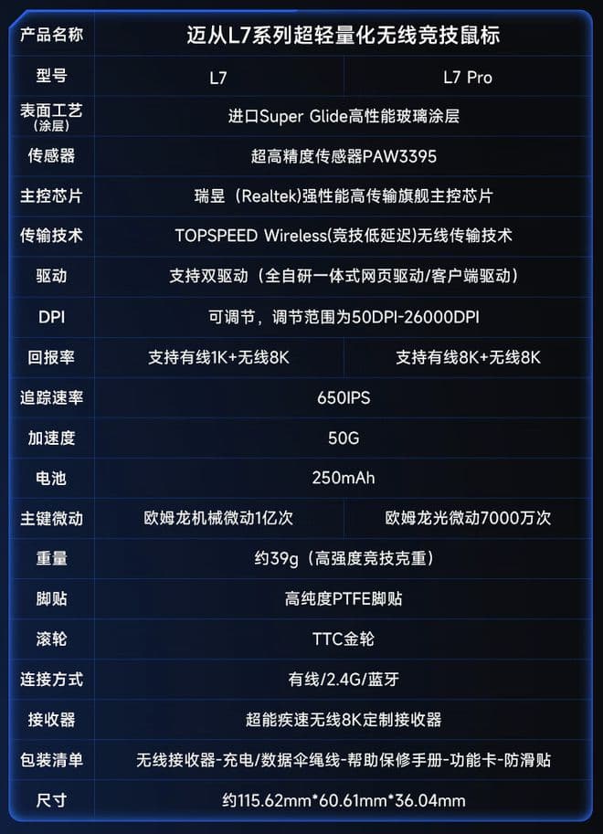 迈从推出 L7 Pro 三模游戏鼠标:PAW3395、39 克重量,229 元