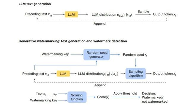Google DeepMind 表示,通过开源代码,更多的人将可以使用该工具加水印,并确定文本输出是否来自他们自己的 LLM,从而构建可信的 AI。