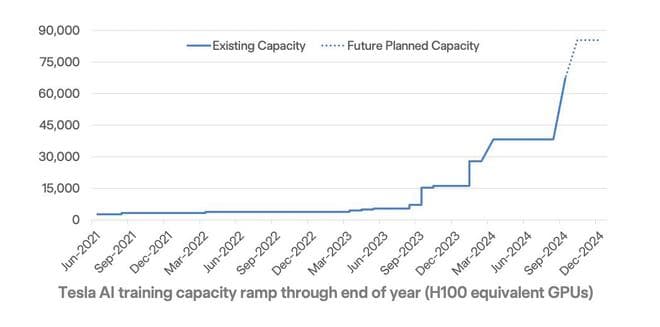特斯拉称,到10月底,特斯拉还将增加2.1万张H100,可大致推测出,特斯拉届时总算力将达88.5 EFLOPS。