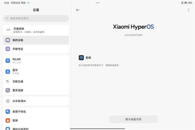 开机之后提示系统有更新,升级完成之后小米澎湃OS的版本号是2.0.3.0,全面升级的澎湃OS除了带来更流畅的操作体验外,也带来了新的美学设计。