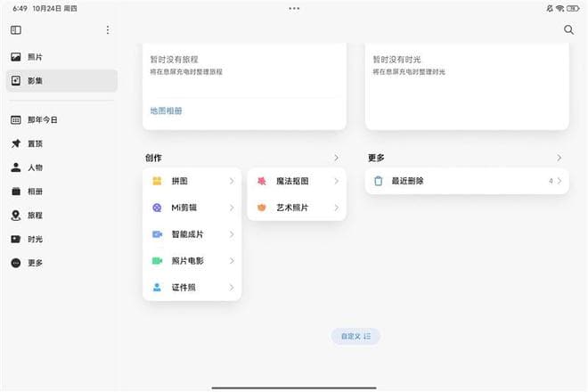 澎湃OS 2.0的相册APP也经过重新优化,除了人物、相册、旅程和时光四个大板块之外,新增了一个创作板块。