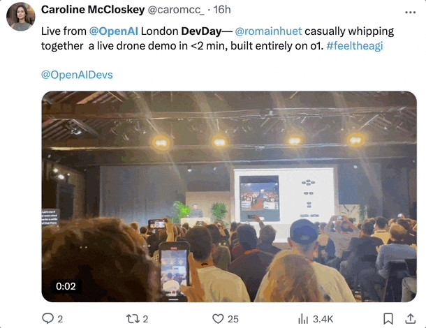 OpenAI在Cursor里用o1-mini现场捏应用,两分钟,直接控制无人机飞行。
