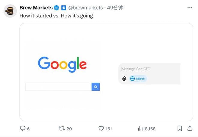 OpenAI在社交媒体X官宣推出搜索功能的帖子引发热议,有一条高赞评论将谷歌的搜索页面和Chat GPT的搜索截图对比,有高赞评论称,这就是谷歌和AI模型支持的新兴搜索工具Perplexity的结合,有评论称,Perplexity和谷歌的CEO现在要瞪眼了。