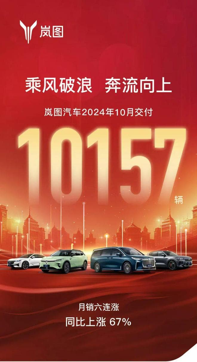 岚图汽车:10月交付10157辆