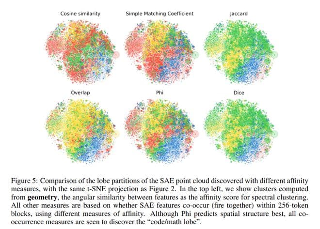 他们发现,那些在文档中经常同时激活的特征,在几何空间中的距离也往往较近,这种空间局部性远超随机分布的预期。