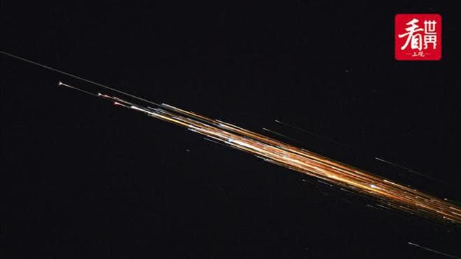 11月4日凌晨1时许,新疆巴州尉犁县境内,载人飞船再入大气层的景象,宛如流星划过天际。