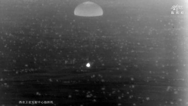 11月4日凌晨1时许,新疆巴州库尔勒,载人飞船再入大气层。