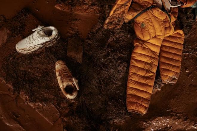 11月2日,西班牙巴伦西亚附近,泥浆中的鞋子和衣物。