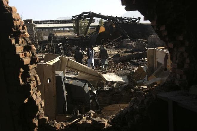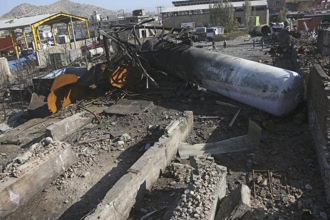 11月3日,阿富汗首都喀布尔,发生火灾的天然气工厂一隅。