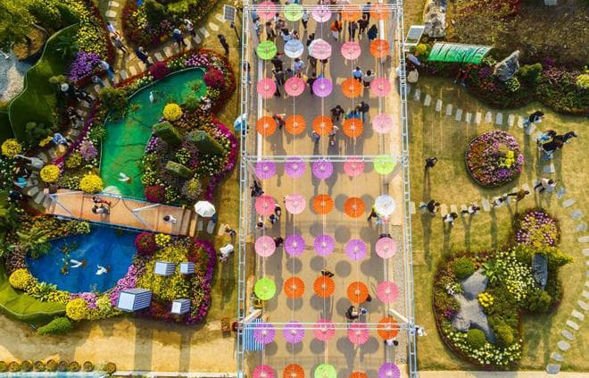 11月2日,游客在湖北省宜昌市点军区牛扎坪村菊花展现场游览。 新华社 郑家裕 摄