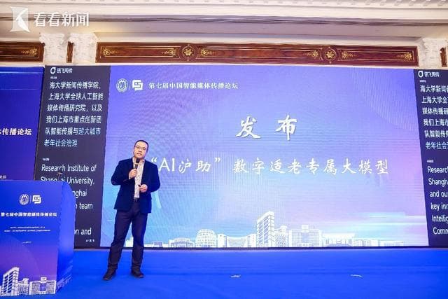论坛开幕式最后一个环节,发布了数字适老专属大模型“AI沪助”。该模型集成日常聊天、病情自诊、社区办事、心理疏导等四大功能,是国内高校第一个智慧适老专属模型。