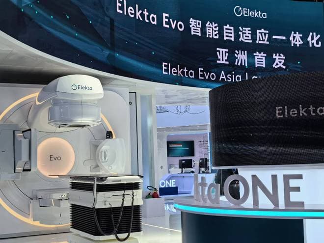 全球精准放疗企业医科达是进博会的“全勤生”。在本届进博会上,医科达展示了多款新品,包括亚洲首发智能自适应一体化放疗平台Elekta Evo、中国首发智慧放疗平台Elekta ONE,以及亚太首发新一代高场强磁共振放疗系统Elekta Unity 3.0,其中Elekta Evo智能自适应一体化放疗平台就运用了AI技术。