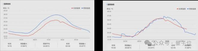 △针对温度预测,八观气象大模型(右)与数值天气预报(左)的对比