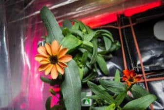 除了种菜,宇航员们也种过花。2016年,国际空间站培育出第一朵在太空盛开的百日菊,作为人类在地球之外培育出的第一朵观赏花,它对植物的太空开花研究作出了不小的贡献。在太空中种花比种生菜等蔬菜更具有挑战性,因为花对光照和其它的环境参数控制要求更加的严格。