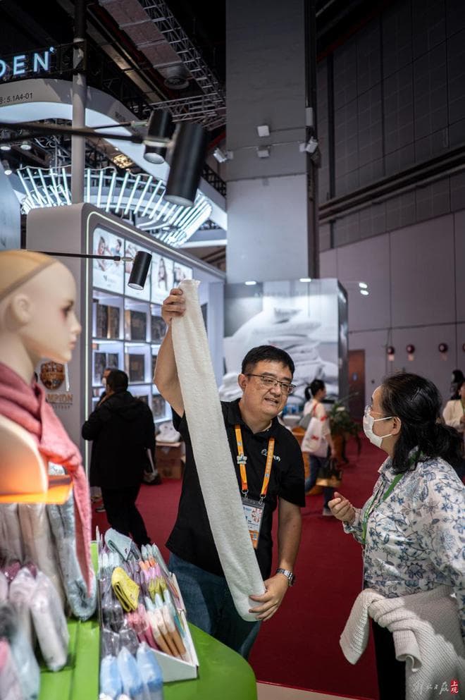 从一只杯子到一块毛巾,日本企业在进博会的平台上不遗余力地推销自家优质的产品。