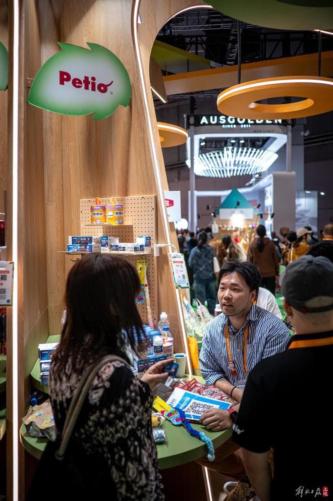 作为进博会“全勤生”,日本贸易振兴机构JETRO今年再度参展,以“与宠物一起生活”为主题,组织了来自54家日本机构和企业的850种展品,在5.1消费品馆集中亮相,涵盖食品、用品、医疗、服务以及IP合作商品等与宠物相关的品类产品。