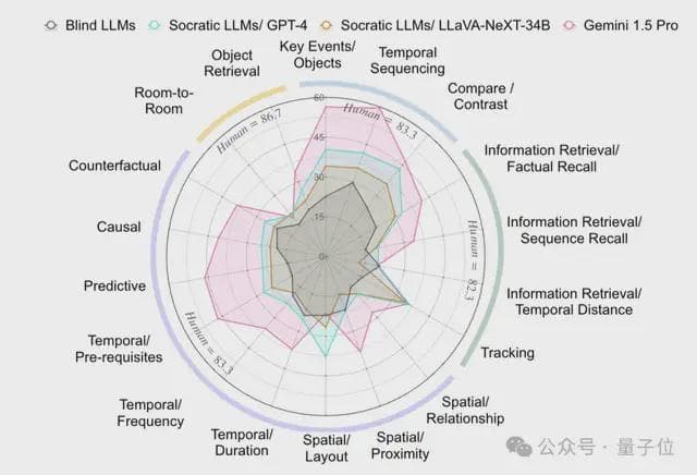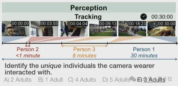 然后邀请了3位人类专家,对上述总时长11.2小时的视频内容进行进行评估,共涉及213个MCQ。