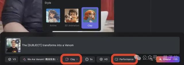 风格样式可以选择动漫、3D动画、黏土动画,动作还可以选择高性能模式。