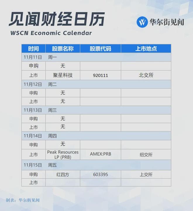 当周(11月11日-11月17日)A股有1只新股上市,1只新股申购;美股有1只新股上市。
