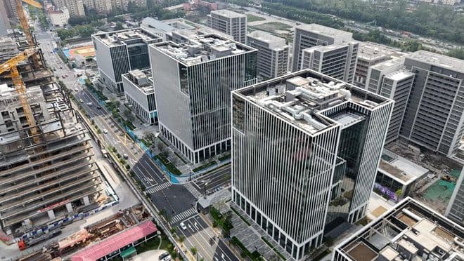 记者日前从徐汇区规划资源局了解到,今年6月,建设规模超百万方的北杨人工智能小镇迎来了首期竣工交付,沿华发路南侧的5栋研发总部办公楼率先亮相。项目整体将于2026-2027年全面竣工,成为涵盖商业、科研、租赁住宅、教育、生态绿地、滨河景观廊道于一体的宜创、宜享、宜业、宜居产业新高地。