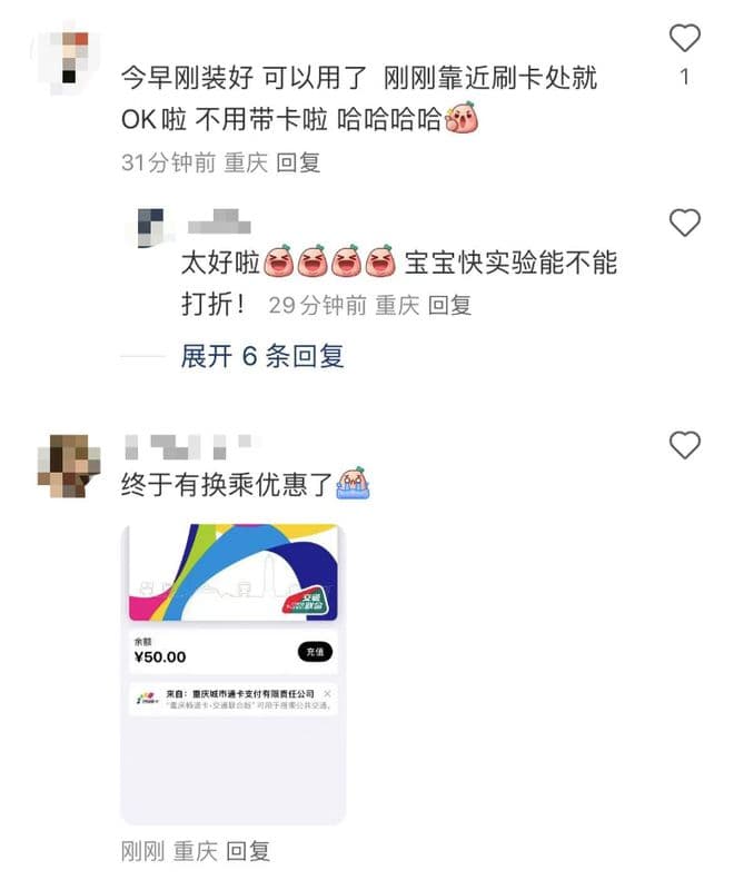 “今早刚装好,可以用了,刚刚靠近刷卡处就OK啦……”“刚刷,秒过……”“太方便了,以后不用带卡了。”对此,一大早就有用户发出使用感受,不少网友纷纷点赞。