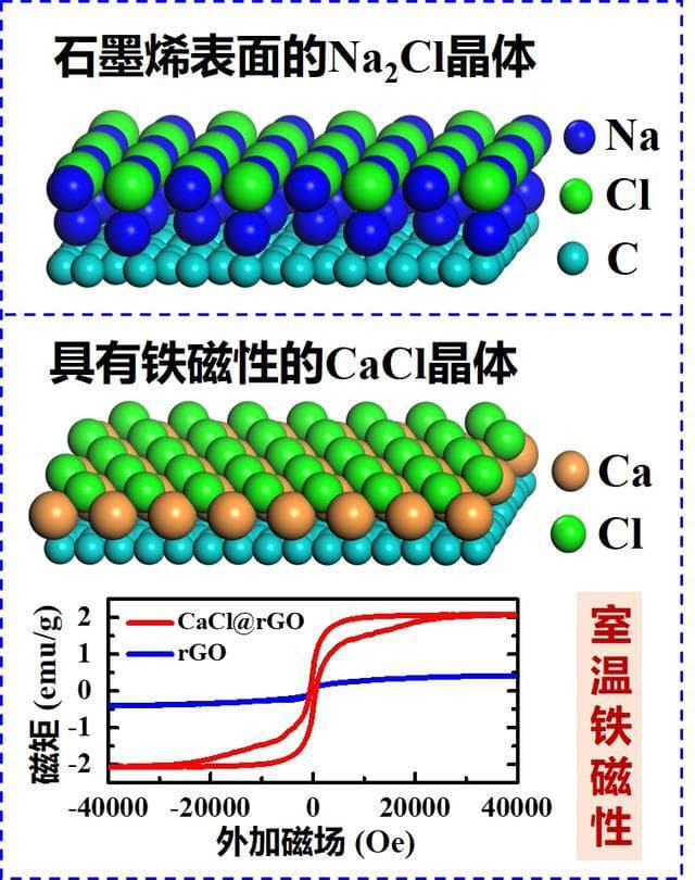 此外,他们还在石墨烯表面观察到了的一氯化钙二维晶体。这些晶体展现出非常独特的性质,不仅具备导电性,竟然还具有铁磁性。