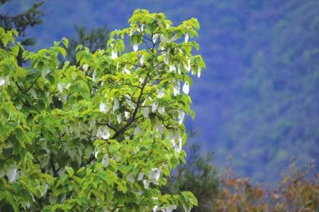 “桐”字辈里,蓝果树科珙桐属的珙桐名气特别大,它可是恐龙时代的“植物活化石”。古植物学家曾经在中生代白垩纪(距今6500万年至1.37亿年)的地层里发现过它的化石。1869年,法国人戴维在今天的四川宝兴县发现了这种珍稀植物,随后许多西方的植物猎人相继来中国寻找珙桐并将它引种到了西方世界。 四川是全国最大的珙桐分布区,在四川雅安荥经县龙苍沟,还发现了大片野生珙桐群落。除四川外,在湖北、湖南、贵州、云南也有少量珙桐分布。 珙桐开花的时候,包裹着头状花序的两片苞片随风舞动,像白鸽在飞翔,因此它也被称为“鸽子树”。