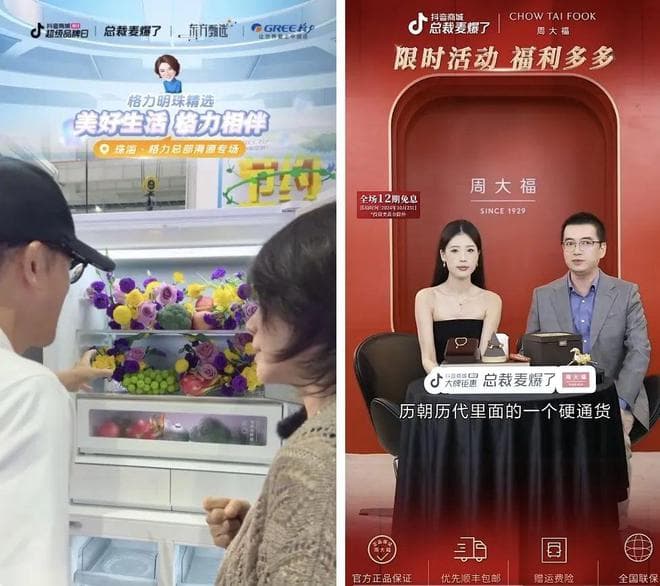 董俞的合体纵然精彩,却只是总裁直播的冰山一角。今年双11期间,抖音直播间的总裁含量达到小高峰,家电、数码、美妆、珠宝、服饰、食品等多赛道的企业一把手都参与进来,平台打出了“双11总裁天天见”这样的口号。